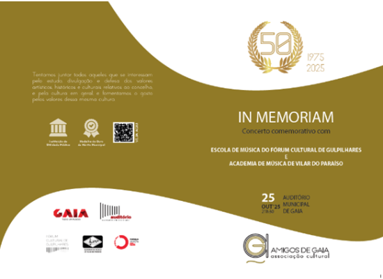 A 25 de outubro, no Auditório Municipal da nossa cidade realizamos um concerto comemorativo – IN MEMORIAM, com a Escola de Música do Forum Cultural de Gulpilhares e a Academia de Música de Vilar do Paraíso, duas excelentes Instituições do nosso concelho e que proporcionaram uma noite de música variada exibindo o talento de muitos jovens e professores e que encheu de alegria os presentes tornando o momento inesquecível. A comemoração dum aniversário é uma felicidade e então através da música será para sempre lembrado o 50º, meio século de dedicação à cultura em favor dos gaienses e de todos […]